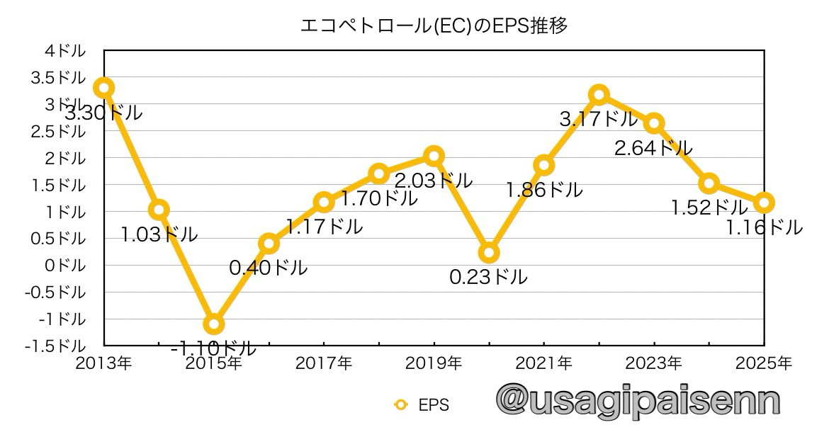 原油価格が減少傾向だからEPSも減少しているんだね・・・